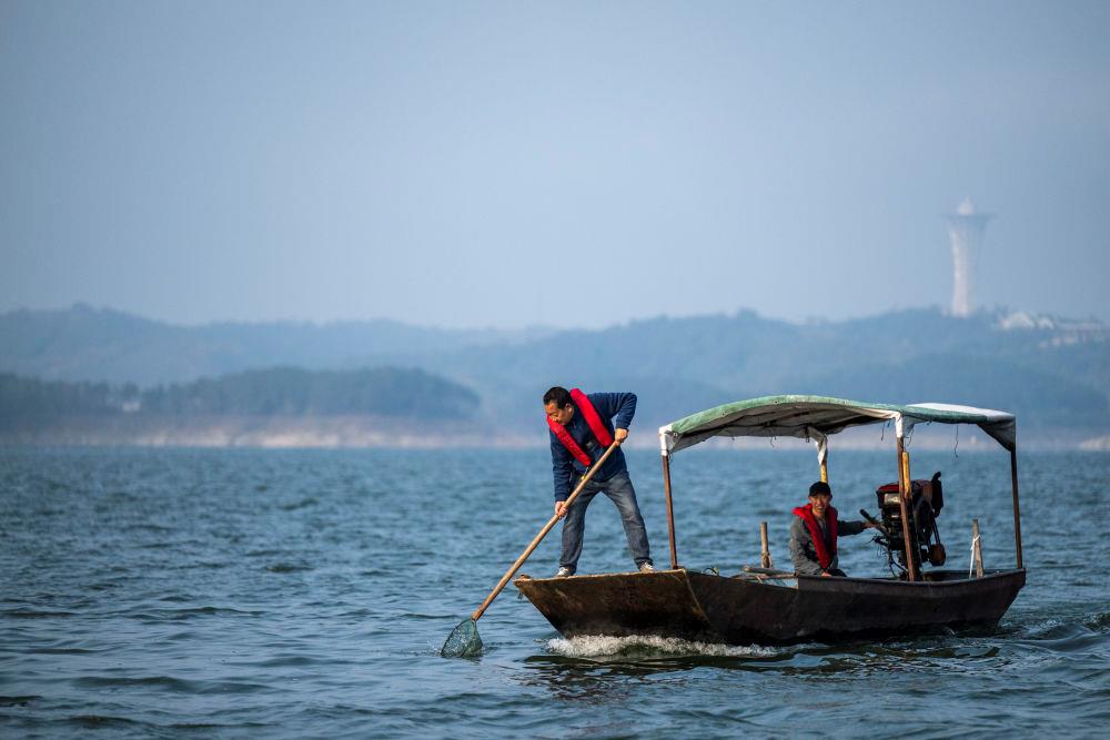 2024年10月28日,湖北十堰丹江口清漂隊(duì)隊(duì)員在庫(kù)區(qū)進(jìn)行清漂作業(yè)。2023年,丹江口成立“小水滴”守水護(hù)水志愿服務(wù)隊(duì),越來(lái)越多人加入守水護(hù)水行列 。