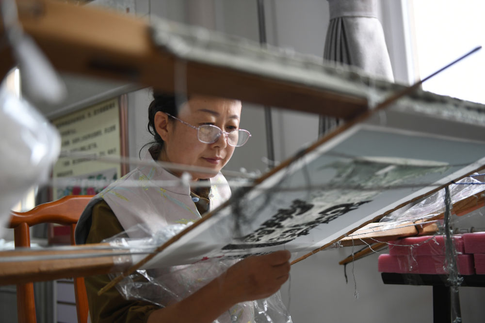 2023年9月8日,陜西千陽繡娘王紅燕在西秦刺繡文化產(chǎn)業(yè)園內(nèi)刺繡。陜西千陽縣是國家級非物質(zhì)文化遺產(chǎn)“西秦刺繡”的重要發(fā)祥地和傳承地。近年來,千陽縣將西秦刺繡作為助農(nóng)增收的重要產(chǎn)業(yè),推動非遺項(xiàng)目產(chǎn)業(yè)化發(fā)展,助力鄉(xiāng)村振興。
