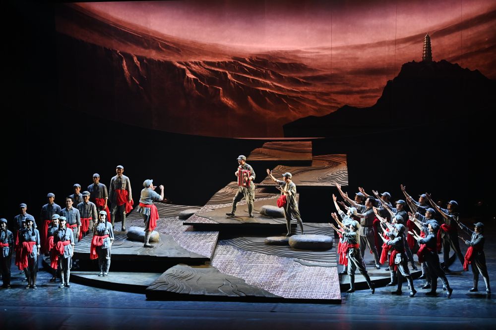 這是話劇《延水謠》演出現(xiàn)場(2024年2月14日攝)。由西安話劇院創(chuàng)排的話劇《延水謠》,再現(xiàn)80多年前文藝工作者集聚延安的盛景。