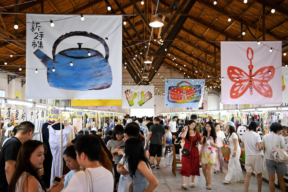 2025年7月5日,游客在西安西倉市集文創(chuàng)公園內(nèi)的“新二手市集”上參觀游覽。2024年以來,西安對西倉區(qū)域?qū)嵤拔⒏隆⑤p改造”,在保留核心區(qū)傳統(tǒng)集市風(fēng)貌的基礎(chǔ)上,升級改造原有設(shè)施,建設(shè)西倉市集文創(chuàng)公園,打造“復(fù)合型文化消費(fèi)新場景”;通過引入創(chuàng)新業(yè)態(tài)、開設(shè)“新二手市集”等方式,讓咖啡潮玩、非遺體驗(yàn)、城市記憶展覽等年輕化元素與市井煙火相融共生,使老城核心區(qū)在“微更新”中持續(xù)煥發(fā)新活力。