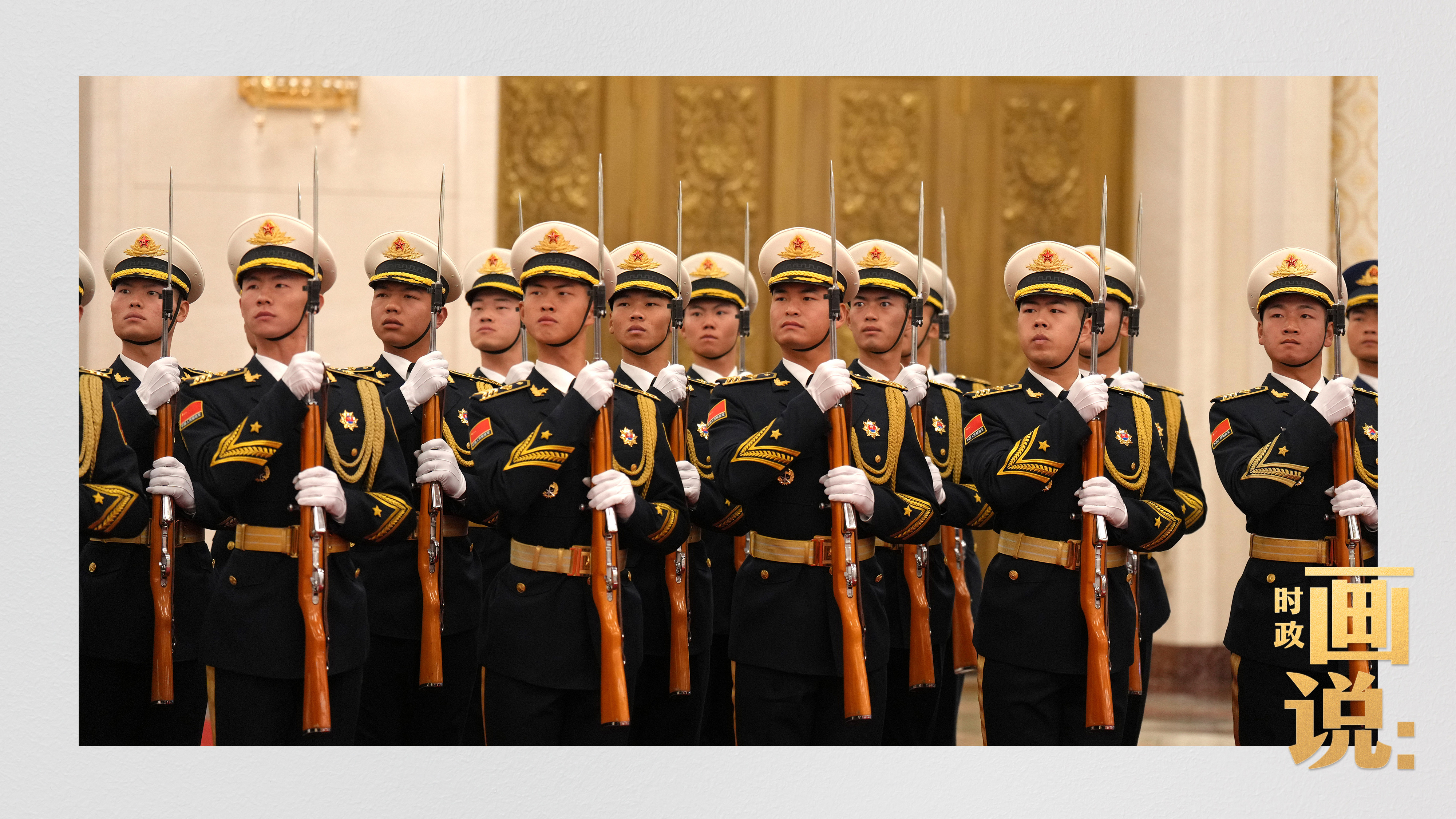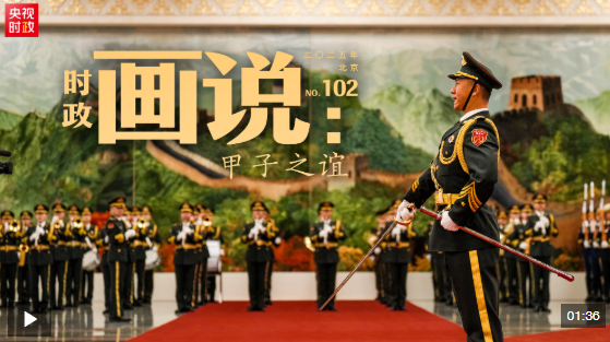 △馬克龍在習近平陪同下檢閱中國人民解放軍儀仗隊并觀看分列式