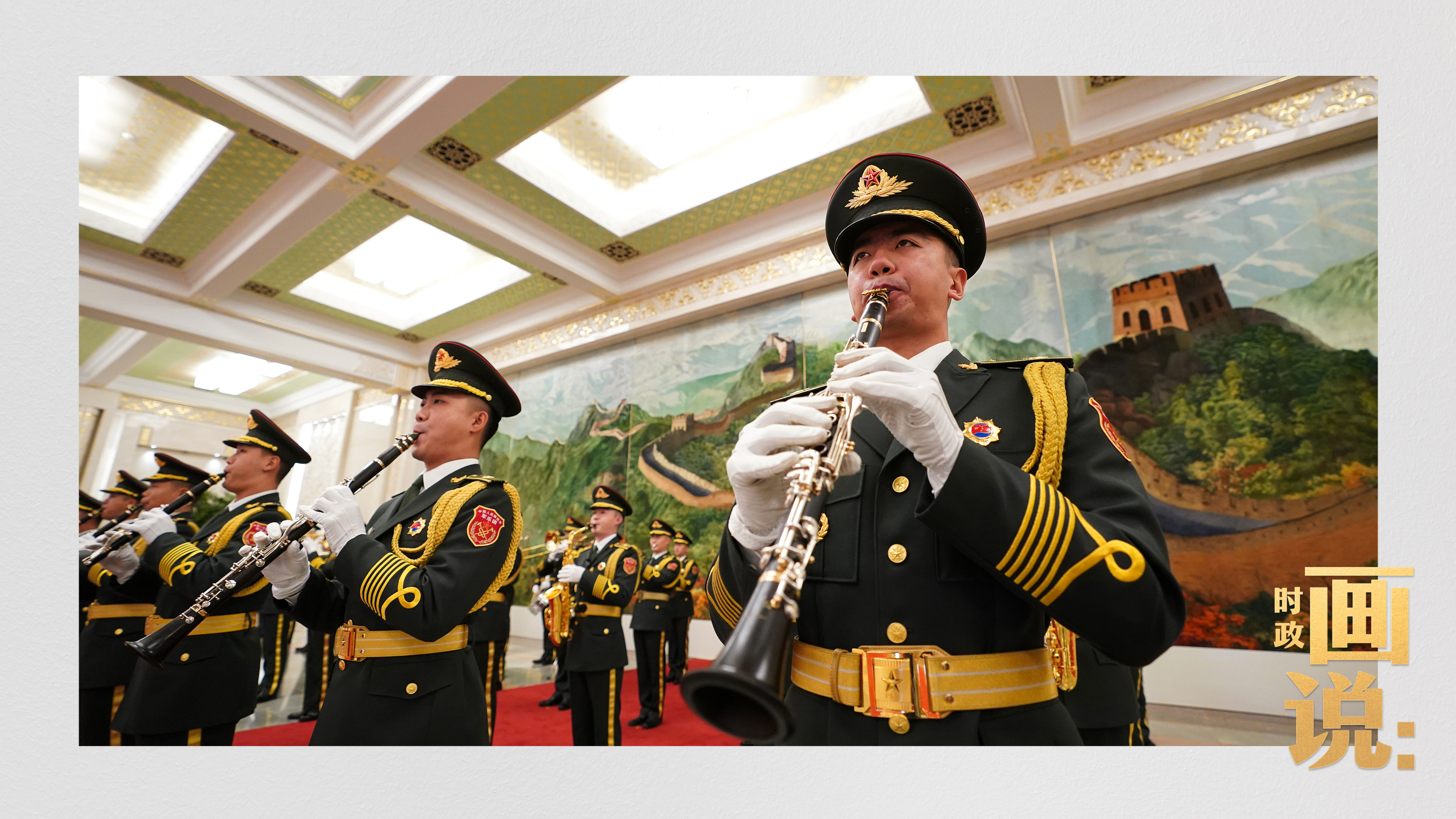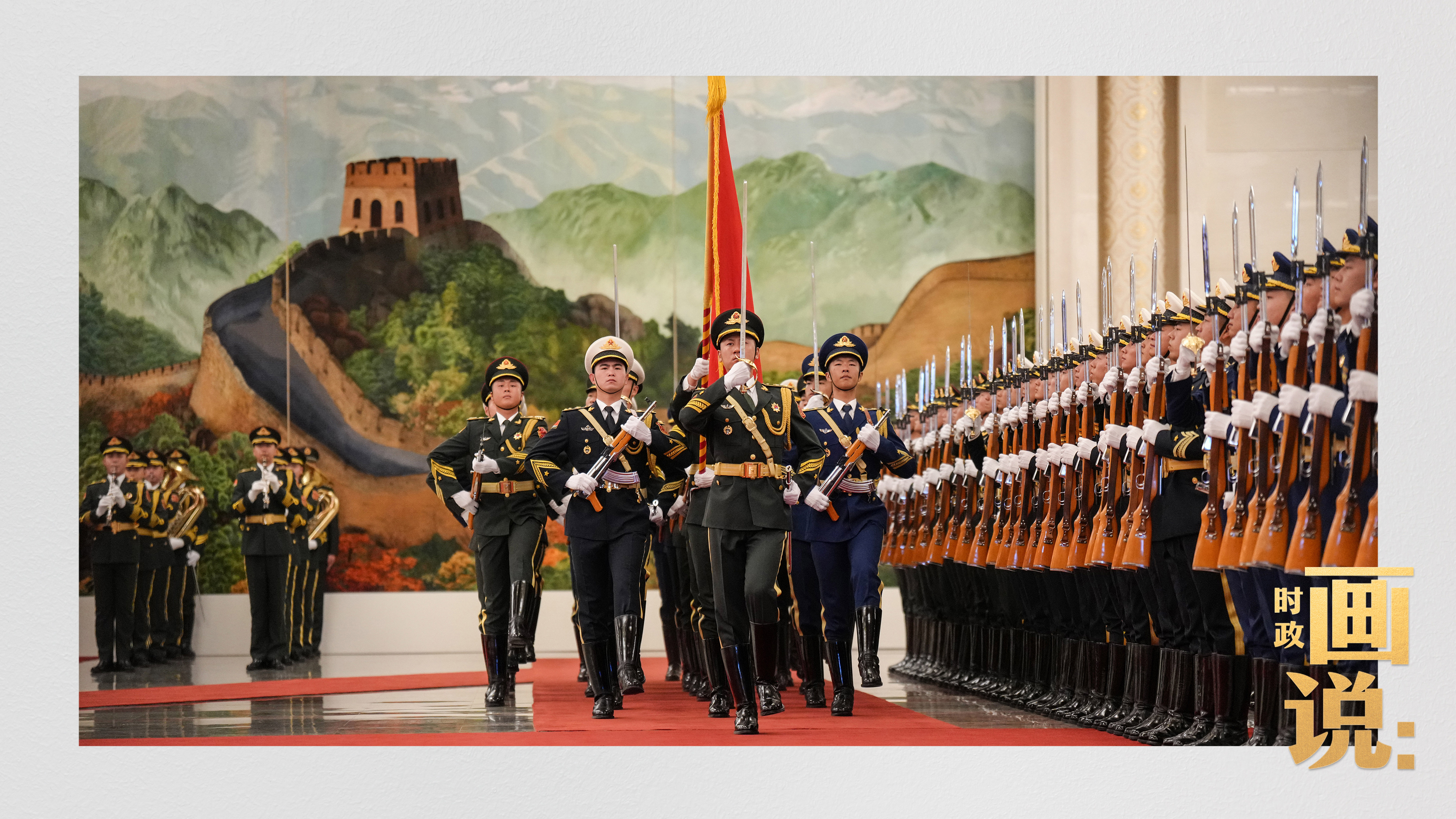 △習近平和夫人彭麗媛在人民大會堂北大廳為馬克龍和夫人布麗吉特舉行歡迎儀式