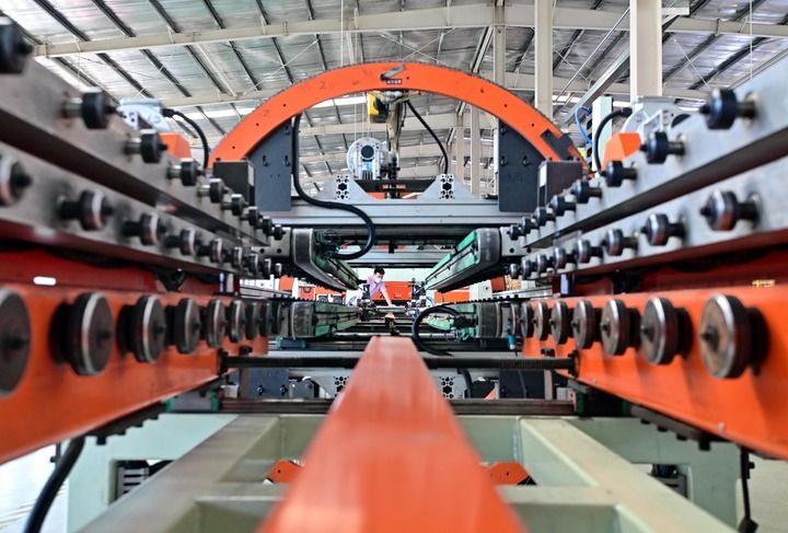 2025年6月18日,河北省唐山市蘆臺經(jīng)濟(jì)開發(fā)區(qū)一家采暖設(shè)備企業(yè)的工人在生產(chǎn)線上工作。新華社記者 楊世堯 攝