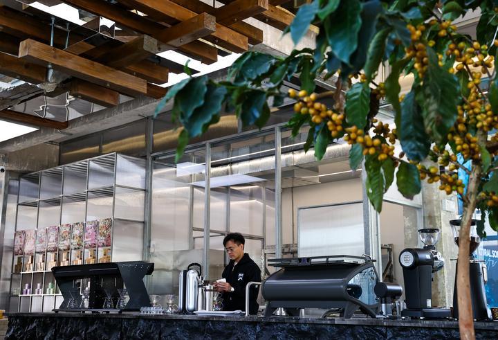 2025年12月10日,旅居云南的韓君瑋在位于昆明的南來盛咖啡店內制作咖啡。韓君瑋自清華大學畢業(yè)后,已在咖啡行業(yè)耕耘十余年。2024年,他受聘成為云南一家老字號咖啡品牌的品牌總顧問,從此投身到云南咖啡的產(chǎn)品研發(fā)和品牌推廣工作中。一年多來,他每月都會來到昆明,短則幾天,長則數(shù)周,開啟了一種“半旅居、半工作”的生活模式?!霸颇巷L景優(yōu)美、氣候宜人,我很享受這樣的狀態(tài)?!表n君瑋說。