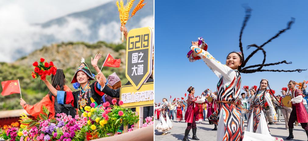 左圖:2025年8月21日上午,彩車上的演員通過(guò)西藏拉薩市布達(dá)拉宮廣場(chǎng)時(shí)向人群揮手,熱烈慶祝西藏自治區(qū)成立60周年。