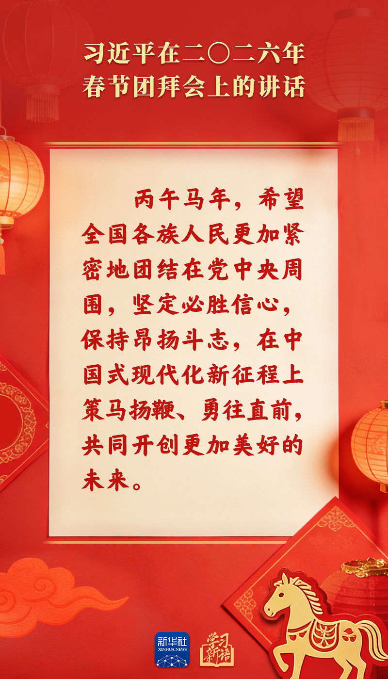 辭舊歲,賀新春。中共中央、國務(wù)院14日上午在人民大會堂舉行2026年春節(jié)團(tuán)拜會。習(xí)近平總書記發(fā)表講話,代表黨中央和國務(wù)院,向全國各族人民,向香港特別行政區(qū)同胞、澳門特別行政區(qū)同胞、臺灣同胞和海外僑胞拜年。