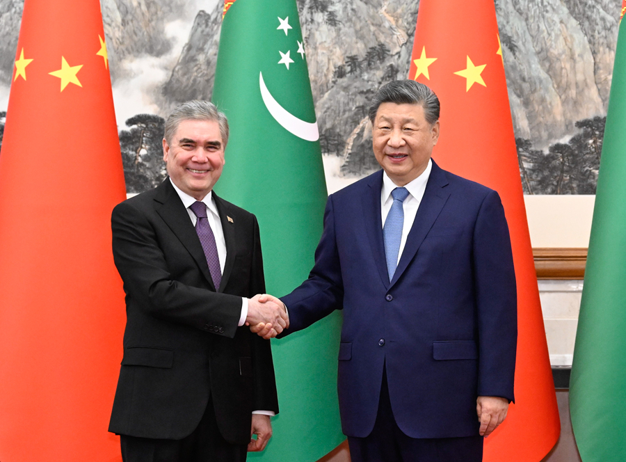 3月18日下午,國家主席習(xí)近平在北京釣魚臺(tái)國賓館會(huì)見來華進(jìn)行友好訪問的土庫曼斯坦民族領(lǐng)袖、人民委員會(huì)主席別爾德穆哈梅多夫。新華社記者 申宏 攝