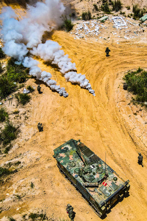 陸軍第73集團(tuán)軍某旅“強(qiáng)軍精武紅四連”組織官兵開展連貫戰(zhàn)術(shù)訓(xùn)練(2023年5月30日攝)。