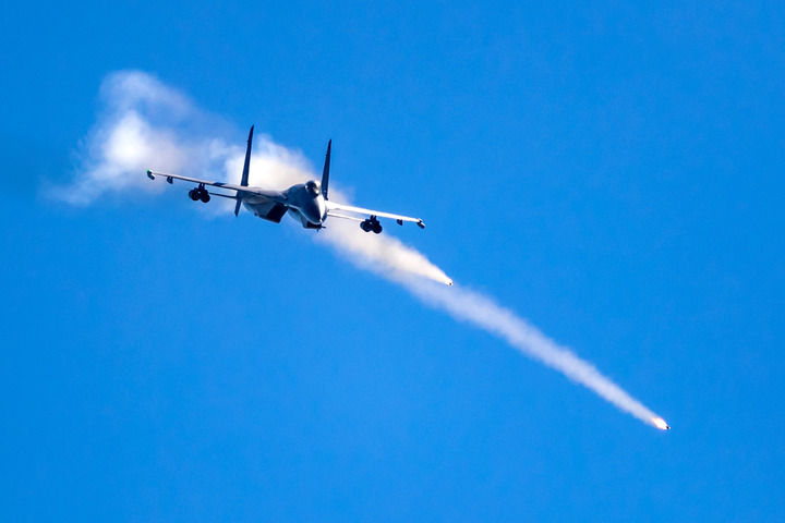 空軍航空兵某旅“強(qiáng)軍先鋒飛行大隊(duì)”飛行員駕駛戰(zhàn)機(jī)進(jìn)行對地打靶訓(xùn)練(2018年9月7日攝)。