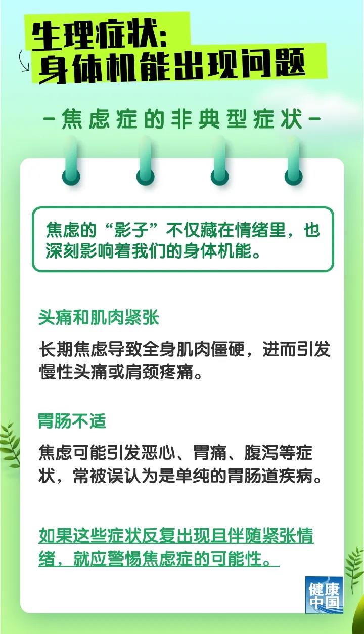 焦慮癥的非典型癥狀涵蓋生理、認知和行為多個方面,很多患者容易忽視,進而延誤治療時機。