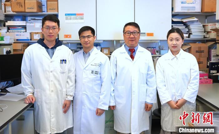 4月10日,香港大學(xué)醫(yī)學(xué)院宣布,其研究團(tuán)隊(duì)成功開(kāi)發(fā)突破性癌癥免疫新療法,名為光敏混合型γδ-T細(xì)胞外泌體,能針對(duì)并摧毀癌細(xì)胞,為癌癥治療帶來(lái)突破。圖為香港大學(xué)醫(yī)學(xué)院臨床醫(yī)學(xué)學(xué)院兒童及青少年科學(xué)系教授涂文偉(右二),以及香港大學(xué)醫(yī)學(xué)院藥理及藥劑學(xué)系、李達(dá)三博士研究中心副教授汪衛(wèi)平(左二)領(lǐng)導(dǎo)的研究團(tuán)隊(duì)?!?香港大學(xué)供圖)