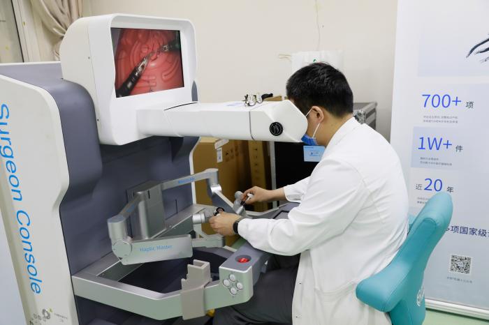 醫(yī)生正在進(jìn)行手術(shù)機(jī)器人操作培訓(xùn) 北京大學(xué)首鋼醫(yī)院供圖
