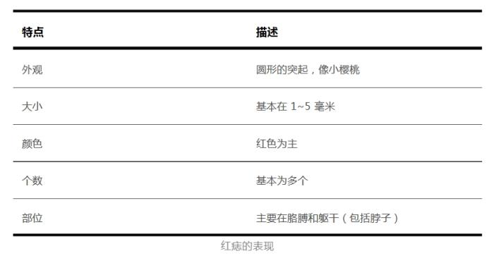 下面我們通過表格梳理了紅痣的主要特點: