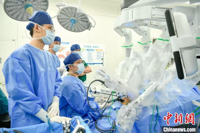 殷曉煜團(tuán)隊(duì)正在對(duì)患者施行機(jī)器人手術(shù)。中山大學(xué)附屬第一醫(yī)院 供圖