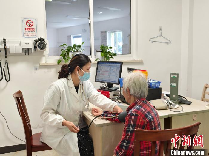 2025年,南潯區(qū)菱湖鎮(zhèn)西柵社區(qū)衛(wèi)生服務站,社區(qū)醫(yī)生馮米雅正在為老人測量血壓。項天琪供圖