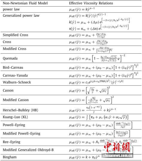 血流動(dòng)力學(xué)中主流的非牛頓流體模型。西北工業(yè)大學(xué)供圖
