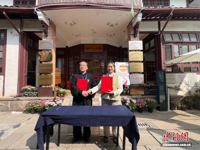 新場(chǎng)海派中醫(yī)文化基地與盧氏太極拳20日簽訂戰(zhàn)略合作協(xié)議。(上海市中醫(yī)文獻(xiàn)館供圖)