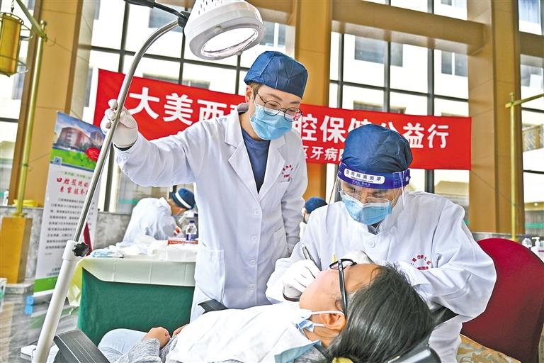 為增強人民群眾的口腔保健意識,讓更多人關(guān)注口腔健康,近日,上海市徐匯區(qū)牙病防治所醫(yī)務(wù)專家團隊在拉薩飯店開展“大美西藏口腔保健公益行”活動,免費為拉薩市民群眾提供口腔健康保健服務(wù)。這是上海市徐匯區(qū)牙病防治所第3次進藏開展公益活動。接下來,該所將在拉薩、山南、日喀則、阿里等地開展為期20天的口腔義診服務(wù)。