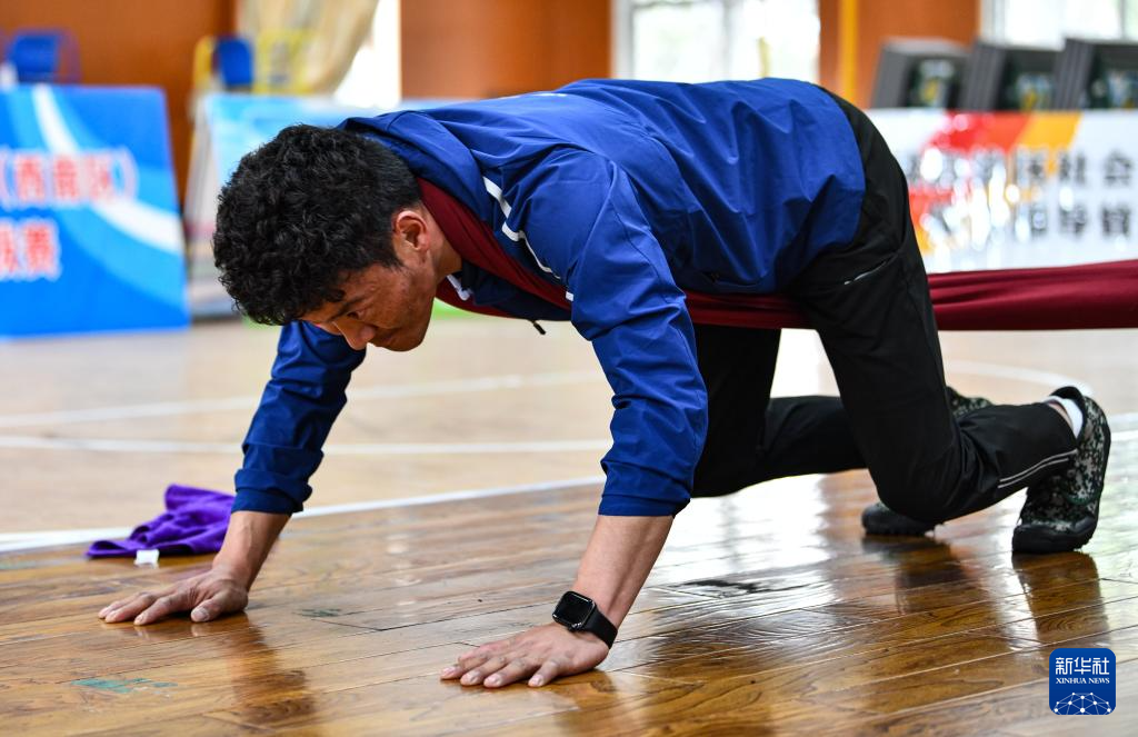 5月9日,林芝隊選手多杰扎巴參加押加選拔賽。新華社記者 晉美多吉 攝