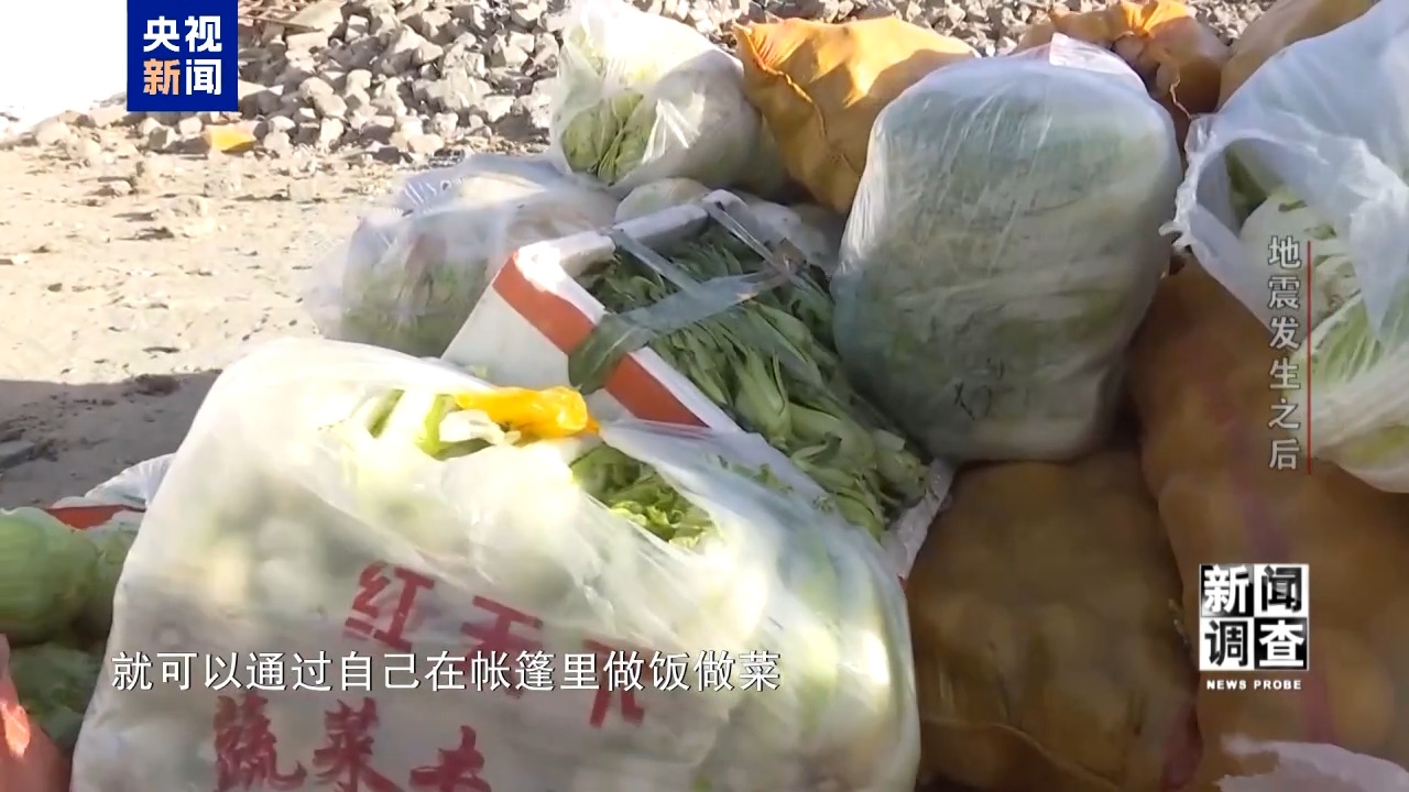 總臺央視記者 張騰飛:還有一點讓我們很意外的是,今天這里出現(xiàn)了新鮮的蔬菜,有大白菜、胡蘿卜。剛才我們告訴大家,隨著暖爐放進各個帳篷,既可以取暖又可以燒水做飯。還有非常新鮮的青菜,那么未來我們的老百姓就可以自己在帳篷里做飯做菜。最后再給大家看的,也是讓我很意外的,在震區(qū)看到大量零食,有這樣的膨化食品、瓜子,包括小朋友可能會喜歡的潤喉糖。這里的物資保障的速度,超出了我此前的想象。
