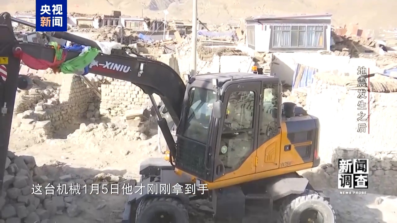 總臺央視記者 張騰飛:與此同時,在現(xiàn)場我們還看到有大型的機械正在對村里道路進行清障。這臺機械其實是達瓦次仁大哥自己的機械,這臺機械1月5日他才剛剛拿到手,花了30多萬,所以非常新。1月7日他聽說地震消息之后,他家住在拉孜縣,聽說震中非常嚴重,二話沒說就開著他家的這個非常新的機械就來到了震區(qū)。這兩三天一直都在震區(qū),哪里需要就到哪里。而且他跟我說,他的油、吃飯都是自己想辦法解決。作為一個不是定日縣的人,但他還是希望能夠出一把力。