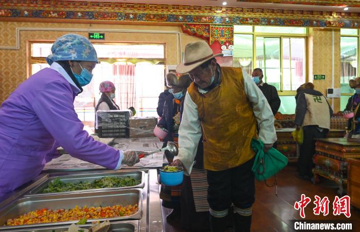 圖為2024年1月27日,西藏薩迦縣特困人員集中供養(yǎng)中心的老人們在排隊打飯。資料圖 趙朗 攝