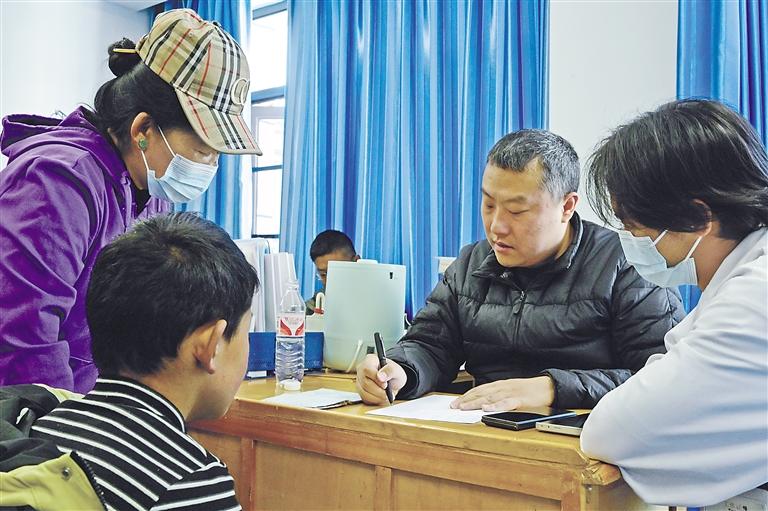 圖為在拉薩市城關(guān)區(qū)人民醫(yī)院內(nèi),江蘇“心佑工程”團(tuán)隊(duì)的醫(yī)生對(duì)前來(lái)就診的兒童進(jìn)行病史詢(xún)問(wèn)、病例檢查。記者 王敏 洛桑 攝