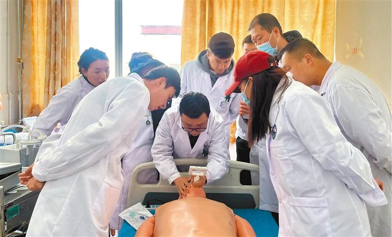 圖為臨床技能培訓(xùn)中,援藏干部人才在模擬人上示范操作。 記者 永青 洛桑旦增 攝