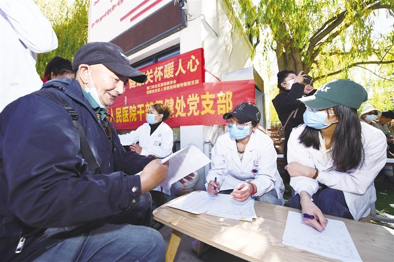 拉薩市城關(guān)區(qū)策門林社區(qū)居委會聯(lián)合自治區(qū)人民醫(yī)院干部保健處黨支部在宗角祿康公園開展義診進社區(qū)活動。西藏日報記者 唐斌 攝
