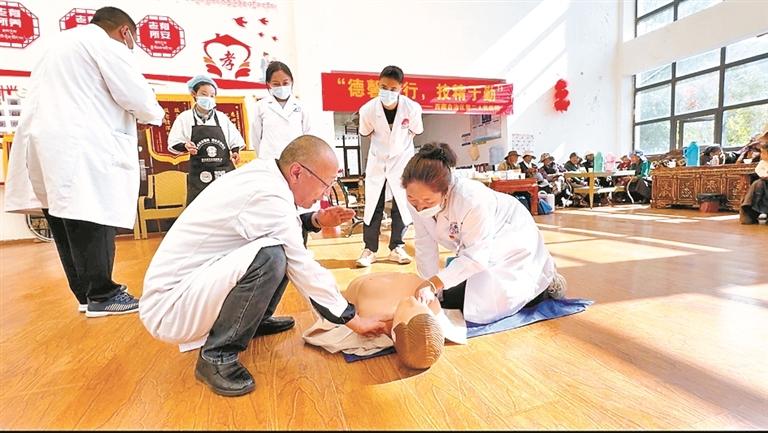 圖為工作人員在學(xué)習(xí)心肺復(fù)蘇。記者 央金 攝