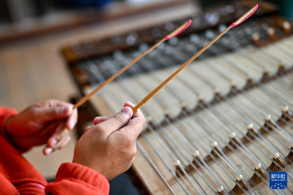 2025年10月11日,達(dá)瓦次仁在練習(xí)演奏揚(yáng)琴。