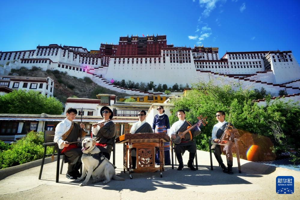 2025年6月17日,咔噠嘎布盲人樂團(tuán)在布達(dá)拉宮前合影。(受訪者供圖)