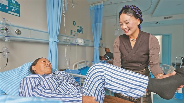 圖為患者在進(jìn)行術(shù)后康復(fù)訓(xùn)練。記者 格桑倫珠 攝