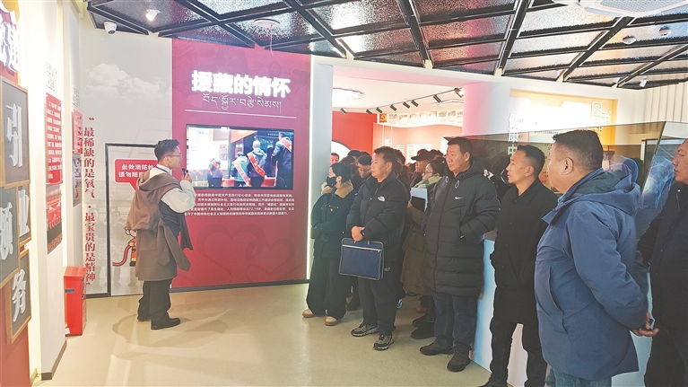 經(jīng)過5個(gè)月的緊張施工,原本老舊的倉庫完成華麗蛻變。基地在設(shè)計(jì)上注重因地制宜,建筑外墻采用藏式寶瓶裝飾與念青唐古拉山剪影,體現(xiàn)地域文化特色;內(nèi)部展陳分兩層14個(gè)展廳,涵蓋黨建、援藏、傳染病防治、慢性病管理、青少年健康、法治保障等內(nèi)容。