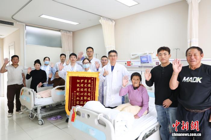 64歲的姐姐次仁忠嘎和56歲的妹妹丁增,在南開大學(xué)附屬北辰醫(yī)院骨關(guān)節(jié)科接受了機器人輔助下雙側(cè)全膝關(guān)節(jié)表面置換術(shù),術(shù)后家屬為該院醫(yī)護團隊獻上哈達及錦旗。(南開大學(xué)附屬北辰醫(yī)院供圖)