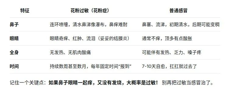 是“感冒”還是“過敏”?一張表教你分清