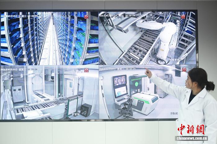 3月26日,在位于甘肅省定西市隴西縣的國(guó)家藥用植物種質(zhì)資源庫(kù)甘肅庫(kù)智能庫(kù)內(nèi),工作人員通過(guò)屏幕展示自動(dòng)化存取設(shè)備存取種子過(guò)程?!±顏嘄?攝
