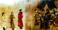 步輦圖 中坐者為唐太宗左二為吐蕃請婚使臣祿東贊,唐代著名畫家閻立本繪