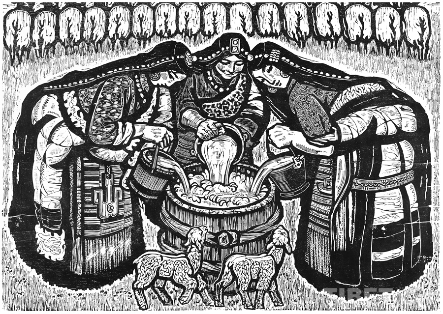 這些年來(lái)可以肯定的是我的創(chuàng)作道路和方向是基本對(duì)頭的。前幾年有人寫(xiě)文章評(píng)論說(shuō),在外來(lái)思想影響已很豐富、多元化格局已經(jīng)形成的情況下,差不多只有版畫(huà)還恪守著現(xiàn)實(shí)主義的創(chuàng)作道路,而且在美術(shù)領(lǐng)域起到了導(dǎo)向作用。順便為版畫(huà)說(shuō)句話:搞版畫(huà)的人一直尊重生活,認(rèn)定生活是第一性的,版畫(huà)一開(kāi)始就是在革命的環(huán)境中發(fā)生、發(fā)展起來(lái)的。版畫(huà)隨著四大發(fā)明發(fā)源于中國(guó)的土壤,后來(lái)被歐洲發(fā)展了,反過(guò)來(lái)又影響到中國(guó)。老大的中國(guó)有發(fā)明權(quán),但并沒(méi)有把它發(fā)展起來(lái)。魯迅先生為了推動(dòng)版畫(huà)的發(fā)展,特別介紹了德國(guó)版畫(huà)和俄羅斯版畫(huà)為代表的版畫(huà)代表作和代表人物,還有美國(guó)的肯特,比利時(shí)的麥綏萊爾。介紹文字很精彩,無(wú)論對(duì)生平、對(duì)作品的介紹都很精彩。他推出的那些版畫(huà)大師,至今仍巍然屹立在美術(shù)史上。他對(duì)版畫(huà)的深刻而獨(dú)到的理解很可貴。國(guó)外有些不很知名但有好作品的,他也介紹到。而且給我們指出哪些是范本,我們一看果然耳目一新。魯迅先生的提倡影響了中國(guó)版畫(huà)的發(fā)展,進(jìn)入了一個(gè)嶄新的階段,形成所謂新興版畫(huà)。這段時(shí)間并不長(zhǎng),也就六七十年吧。版畫(huà)統(tǒng)領(lǐng)潮流,面向生活的潮流。所以它的路子就很正,這個(gè)正就是正統(tǒng),一直發(fā)展得很健康。我從小就受影響,我當(dāng)時(shí)所看到的版畫(huà)都是反映民間生活的東西:戰(zhàn)爭(zhēng)年代反映民間的疾苦與災(zāi)難,和平年代反映民眾的感情和生活,所表現(xiàn)的風(fēng)景也由平常人眼中投射。一句話就是為人民服務(wù)指導(dǎo)下的藝術(shù)創(chuàng)作。如果問(wèn)我的作品和生活的距離有多大,可說(shuō)距離是小的,并未受到更多潮流的干擾,并未背離為人民服務(wù)的方向。正因如此,我要把西藏題材表現(xiàn)好,表現(xiàn)在一個(gè)理想的藝術(shù)高度上,而且這一高度還能讓一般欣賞者達(dá)到。我的理想就是這樣,要達(dá)到這一目標(biāo)看來(lái)還很費(fèi)勁。