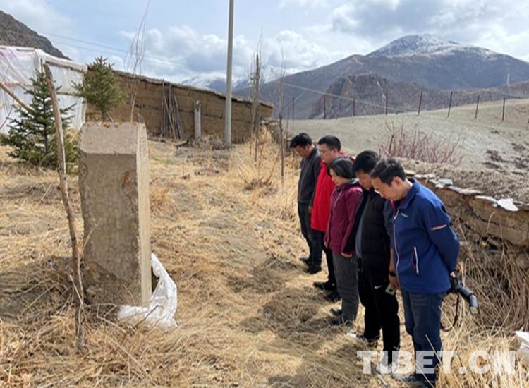 中心昌都采訪組一行在洛隆縣義章寺烈士紀念碑前肅立默哀。這塊紀念碑是1959年中國人民解放軍駐西藏部隊西藏平叛后設(shè)立的一座紀念碑。