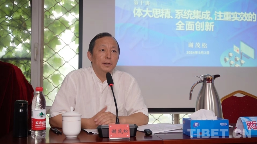 9月3日下午,國家創(chuàng)新與發(fā)展戰(zhàn)略研究會資深研究員,中國文明和中國道路研究中心主任,清華大學國家戰(zhàn)略研究院資深研究員謝茂松應邀到中國西藏信息中心,做客“榮豐大講堂”,以《體大思精、系統(tǒng)集成、注重實效的全面創(chuàng)制》為題,分享其學習黨的二十屆三中全會精神的體會和認識。