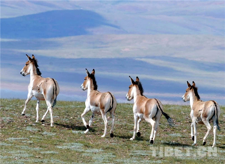 圖為奔跑在羌塘國家級自然保護區(qū)的國家一級保護動物藏野驢(2009年) 攝影:唐召明