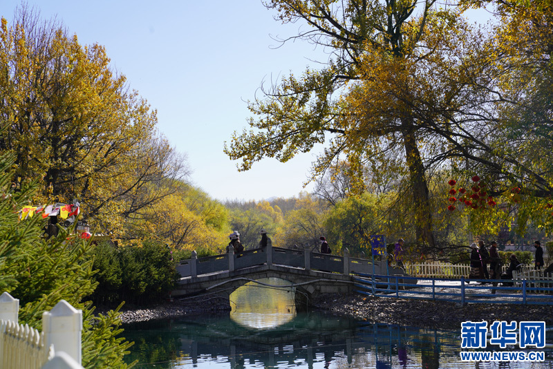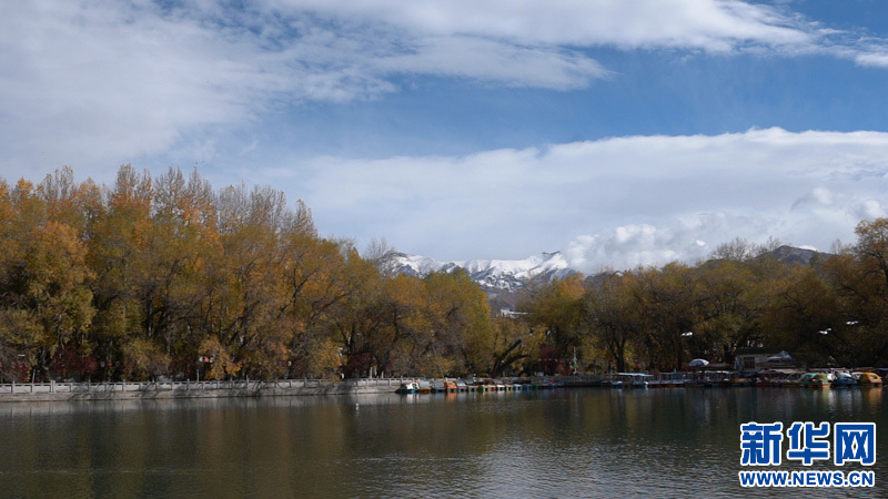 金秋的宗角祿康公園景致別有一番滋味:藍天、碧水與遠處的雪山交相輝映,一切仿佛是畫家手中的調(diào)色盤,美的恰到好處。