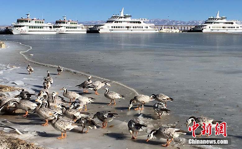 青海湖冰封玉砌 宛如仙境