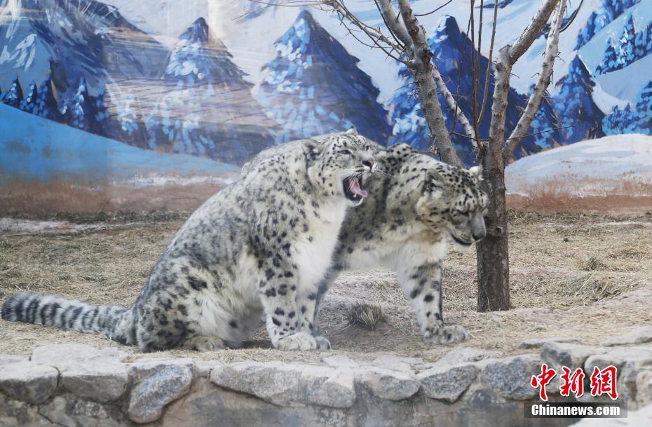 3月13日,青藏高原野生動(dòng)物園雪豹館內(nèi),“傲雪”(左)陪伴21歲的“大豹”(右)享受春日暖陽。副園長(zhǎng)齊新章介紹,為了雪豹的身心健康,2017年,動(dòng)物園嘗試以科學(xué)、理性的技術(shù)將年幼的雌性“傲雪”和年老的雄性“大豹”合籠飼養(yǎng),發(fā)現(xiàn)“大豹”在“傲雪”的陪伴和帶動(dòng)下,活動(dòng)量明顯增加。據(jù)悉,2000年出生的“大豹”今年已21歲(相當(dāng)于人類105歲),突破雪豹的壽命極限值,且身體各項(xiàng)指標(biāo)穩(wěn)定。中新社記者 馬銘言 攝
