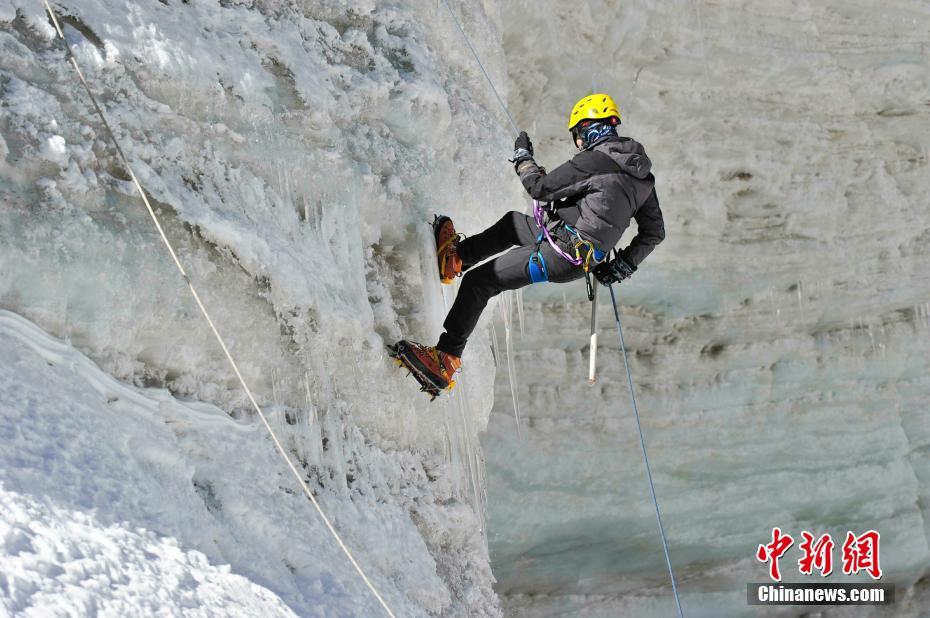 西藏拉薩河谷1號(hào)冰川(廓瓊崗日冰川)景區(qū)將與2021年4月正式全面開(kāi)放,洛堆峰雪山攀登項(xiàng)目也將正式啟動(dòng)。圖為登山愛(ài)好者進(jìn)行攀登訓(xùn)練。(資料圖片)中新社發(fā) 貢嘎來(lái)松 攝