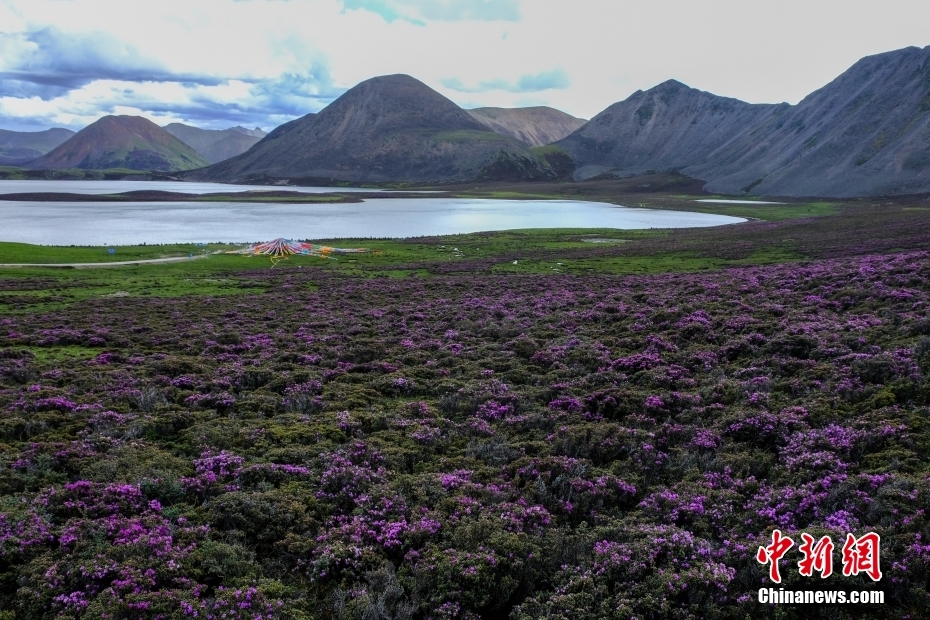 6月23日,思金拉措湖畔紫色鮮花盛開(kāi),景色秀麗。思金拉措位于西藏墨竹工卡縣日多鄉(xiāng),海拔4500多米,周邊群峰簇?fù)恚匦为q如聚寶盤,不少民眾將其稱為西藏的“財(cái)神湖”。 中新社記者 江飛波 攝