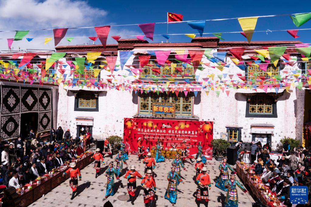 1月26日,活動現(xiàn)場的群眾載歌載舞,迎接春節(jié)、藏歷新年。新華社記者 普布扎西 攝