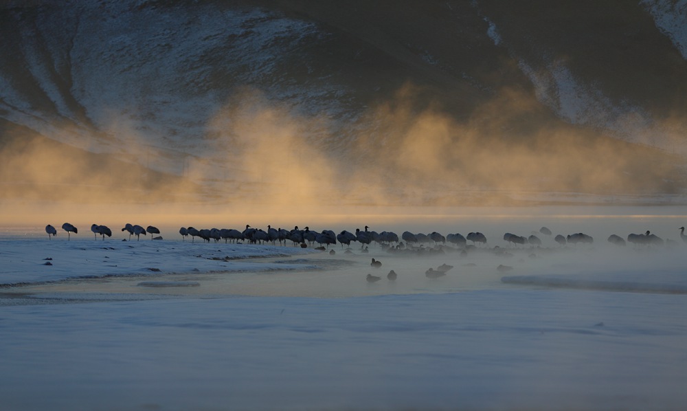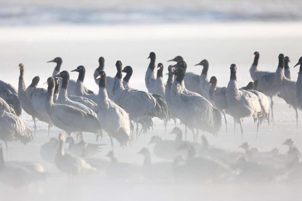 近日,西藏拉薩市林周縣迎來降雪,位于林周縣境內(nèi)的黑頸鶴保護區(qū)變成了粉妝玉砌的世界,黑頸鶴與白皚皚的大雪相互點綴,構(gòu)建出一幅自然和諧的冬日畫卷。