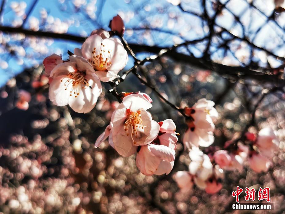 3月的九寨溝春回大地,暖陽怡人,遍布河谷、湖畔、山腰的九寨扁桃花迎風(fēng)綻放,花期正當(dāng)時(shí)。梁楓 攝